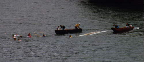 | Zur Sicherheit der Mannschaften sind Rettungsbote im Einsatz. (15kByte)