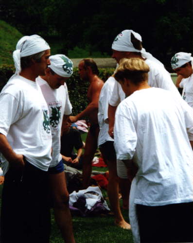 | Eine der Mannschaften (die DG Dragons), die extra T-Shirts und Kopftücher bedrucken liessen (27kByte)