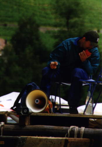 | Der Starter auf dem schwimmenden Floss (19kByte)