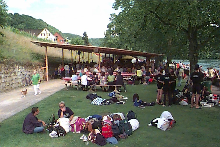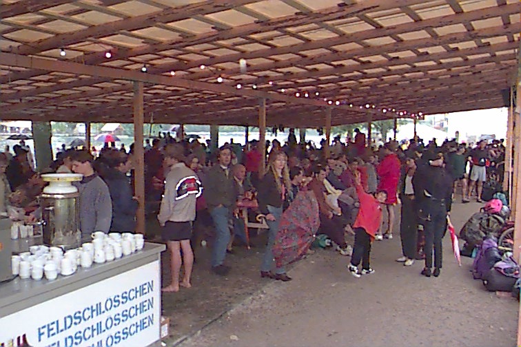 Das schützende Dach der Festwirtschaft ist bei Regen sehr beliebt. (121kByte) |