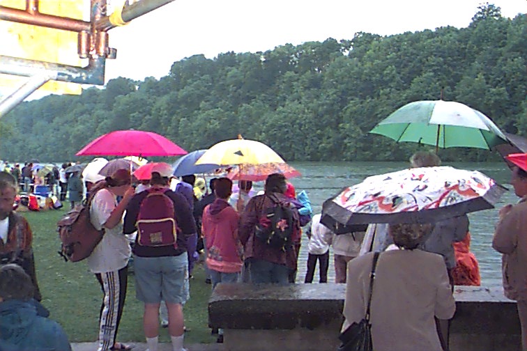 Auch strömender Regen und eine sumpfige Wiese können die Zuschauer nicht abhalten. (101kByte) |